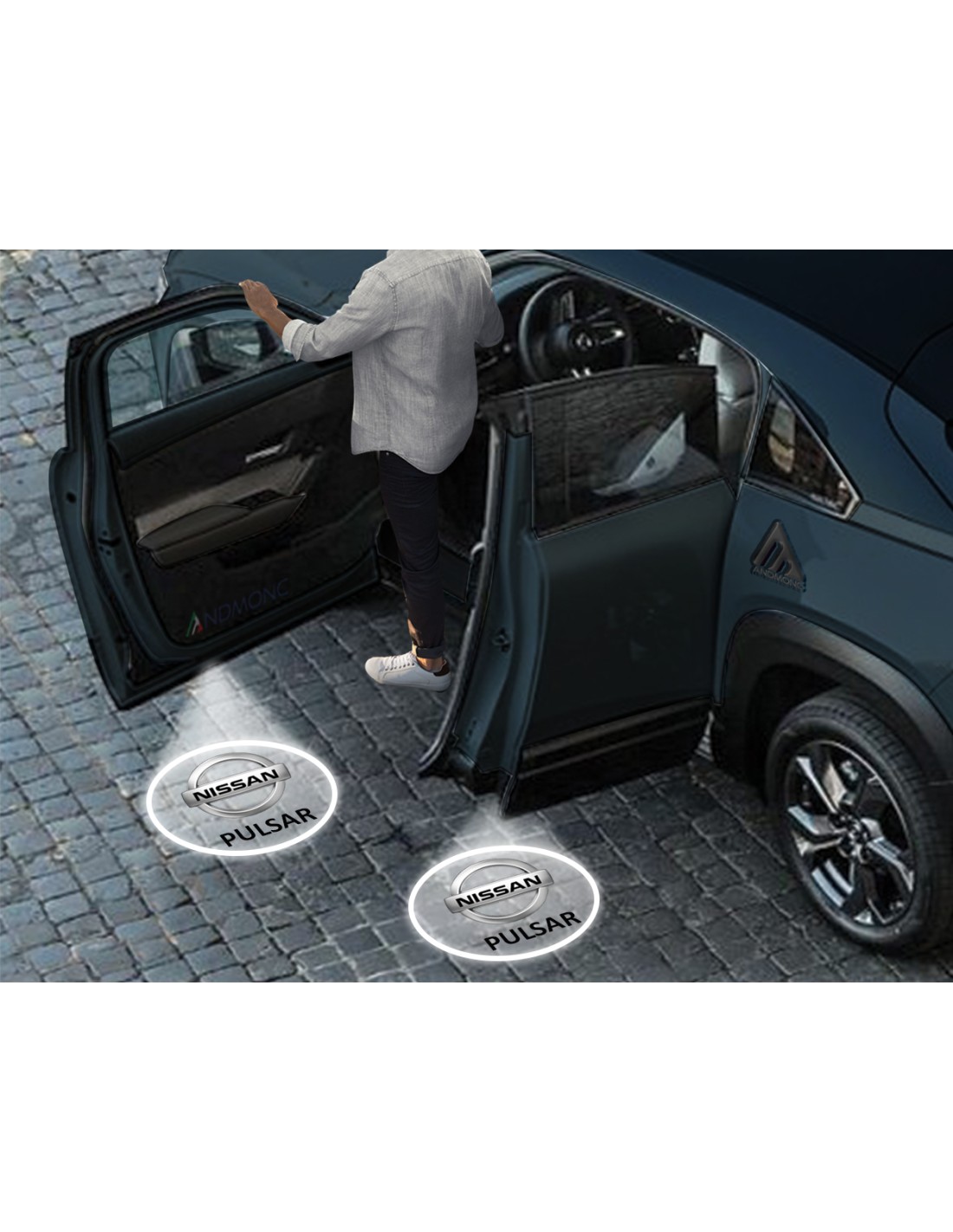 • Kit luci led sottoporta modello Carbonio, sensore automatico intelligente con Proiezione logo Nissan Pulsar, kit da 2 o da 4 Porte