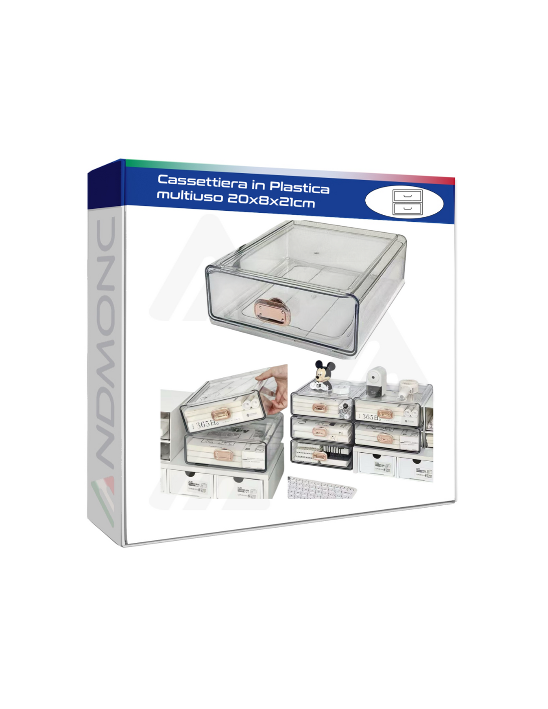 Organizza al meglio i tuoi piccoli oggetti con questa pratica cassettiera in plastica multiuso. Con dimensioni compatte di 20x8x21 cm, è perfetta per essere posizionata su scrivanie, scaffali o all'interno di armadi.