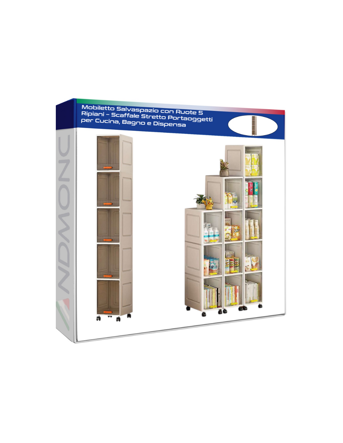 Il mobiletto salvaspazio stretto con ruote a 5 ripiani è ideale per organizzare cucina, bagno, lavanderia e piccoli spazi domestici. Grazie alla struttura verticale compatta, permette di sfruttare facilmente gli spazi inutilizzati tra mobili ed elettrodomestici.