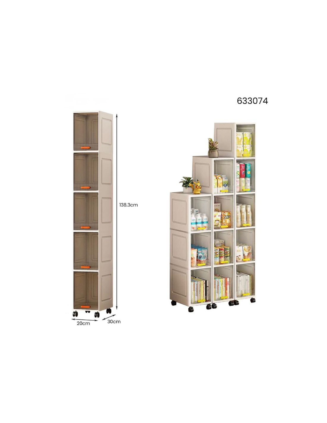 Perfetto per chi cerca un mobile stretto, capiente e facile da spostare, ideale per mantenere ordine anche negli spazi più piccoli.