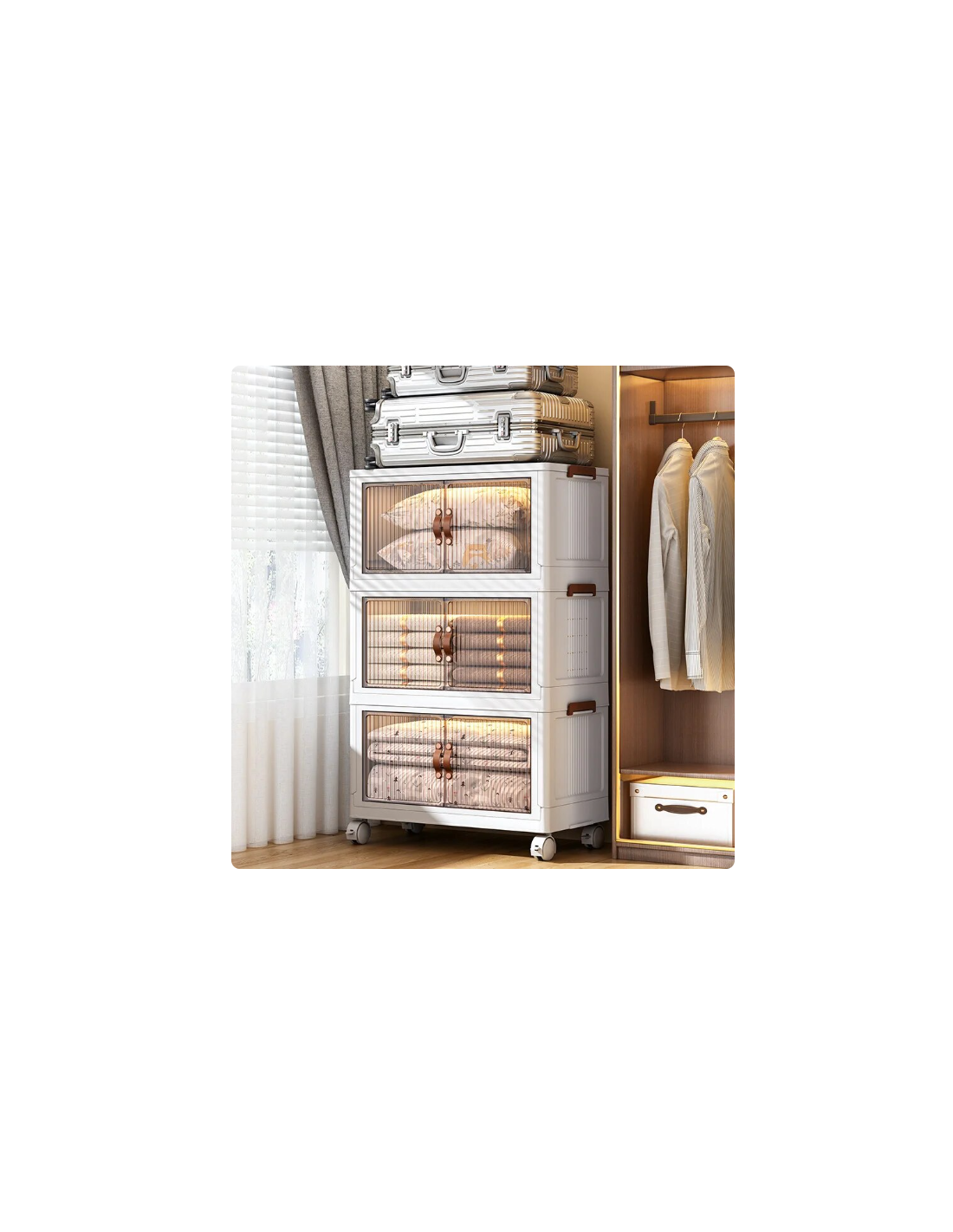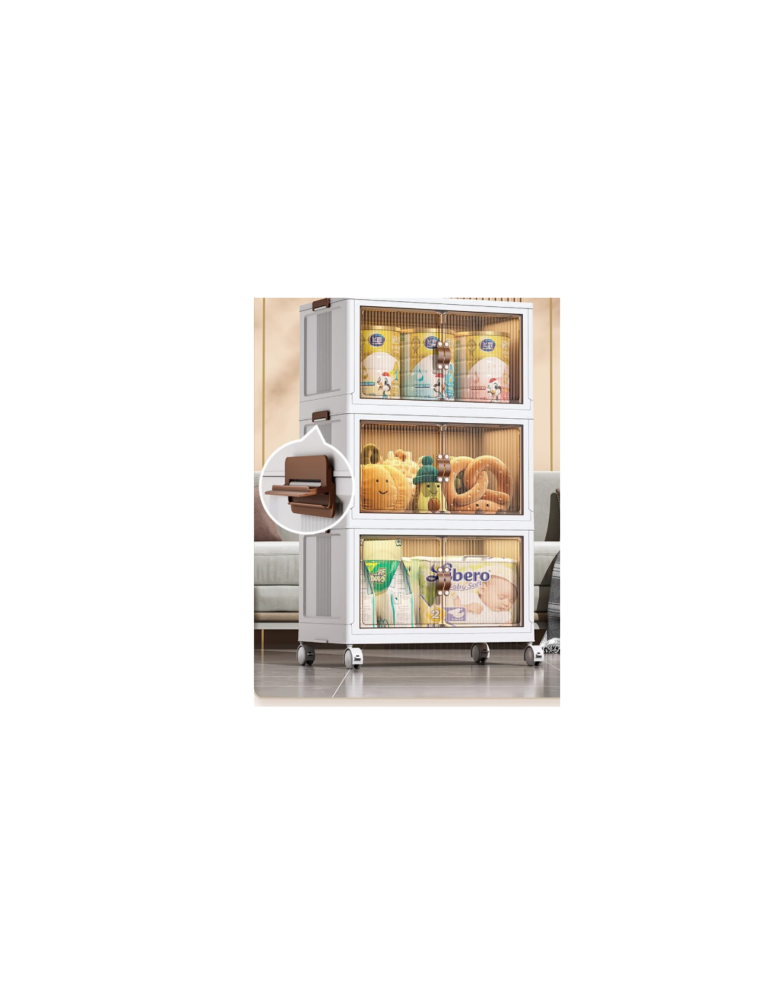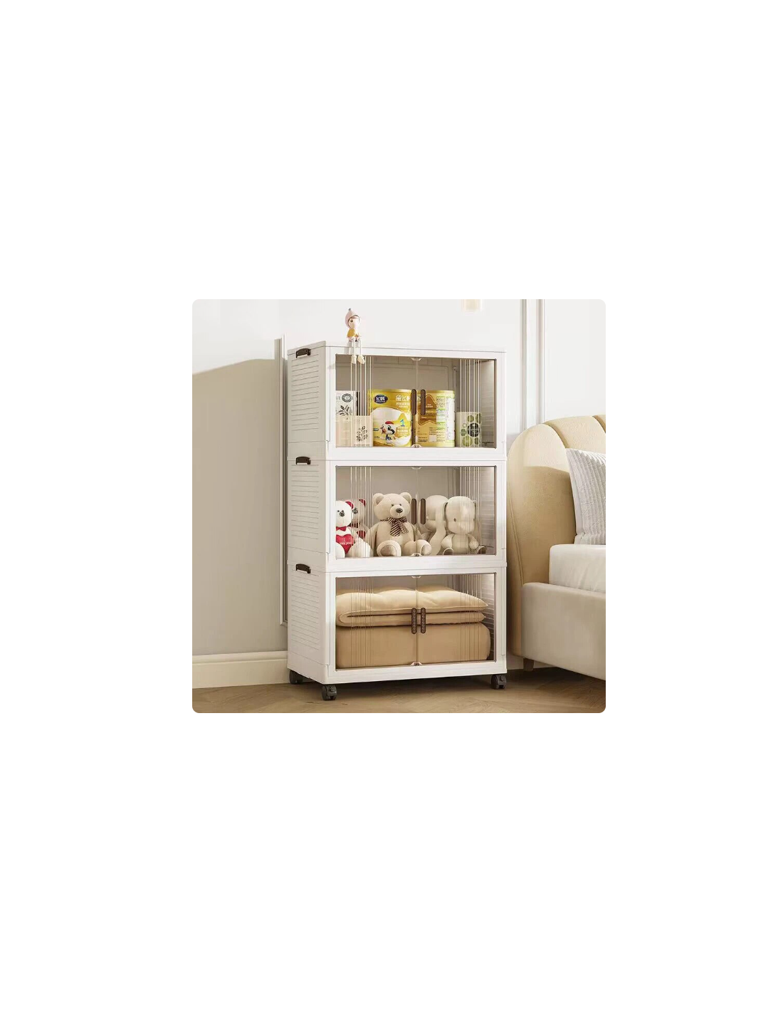 La costruzione in plastica di alta qualità non è solo resistente e durevole, ma anche incredibilmente leggera. Puoi spostare il mobile con facilità da una stanza all'altra, creando soluzioni di storage temporanee o permanenti ovunque ne abbia bisogno. Che si tratti del soggiorno, della camera da letto, dell'ufficio o persino del garage, questo mobile si adatta perfettamente a ogni ambiente.