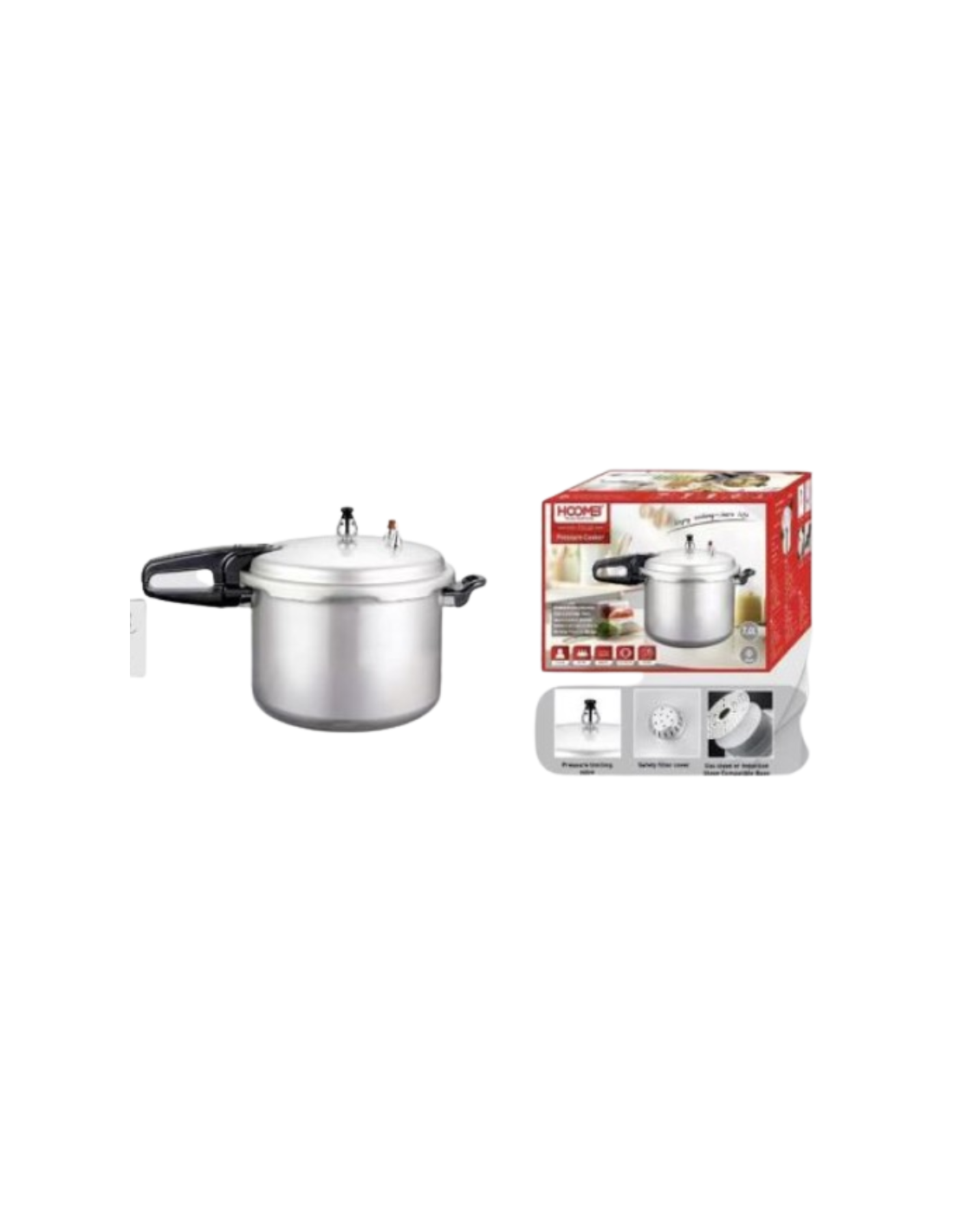 La pentola a pressione HOOMEI HM-5044K è pensata per chi ha bisogno di grande capacità, affidabilità e massima sicurezza in cucina. Con una capacità di 7 litri, è ideale per famiglie numerose o per preparazioni abbondanti fino a 5–7 persone, riducendo notevolmente i tempi di cottura.
