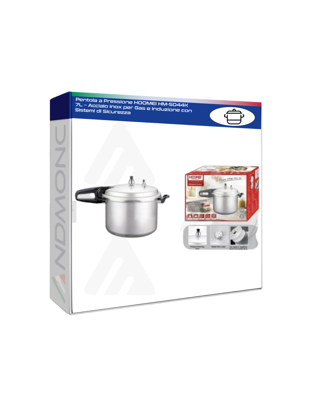 Pentola a Pressione HOOMEI HM-5044K 7L – Acciaio Inox per Gas e Induzione con Sistemi di Sicurezza