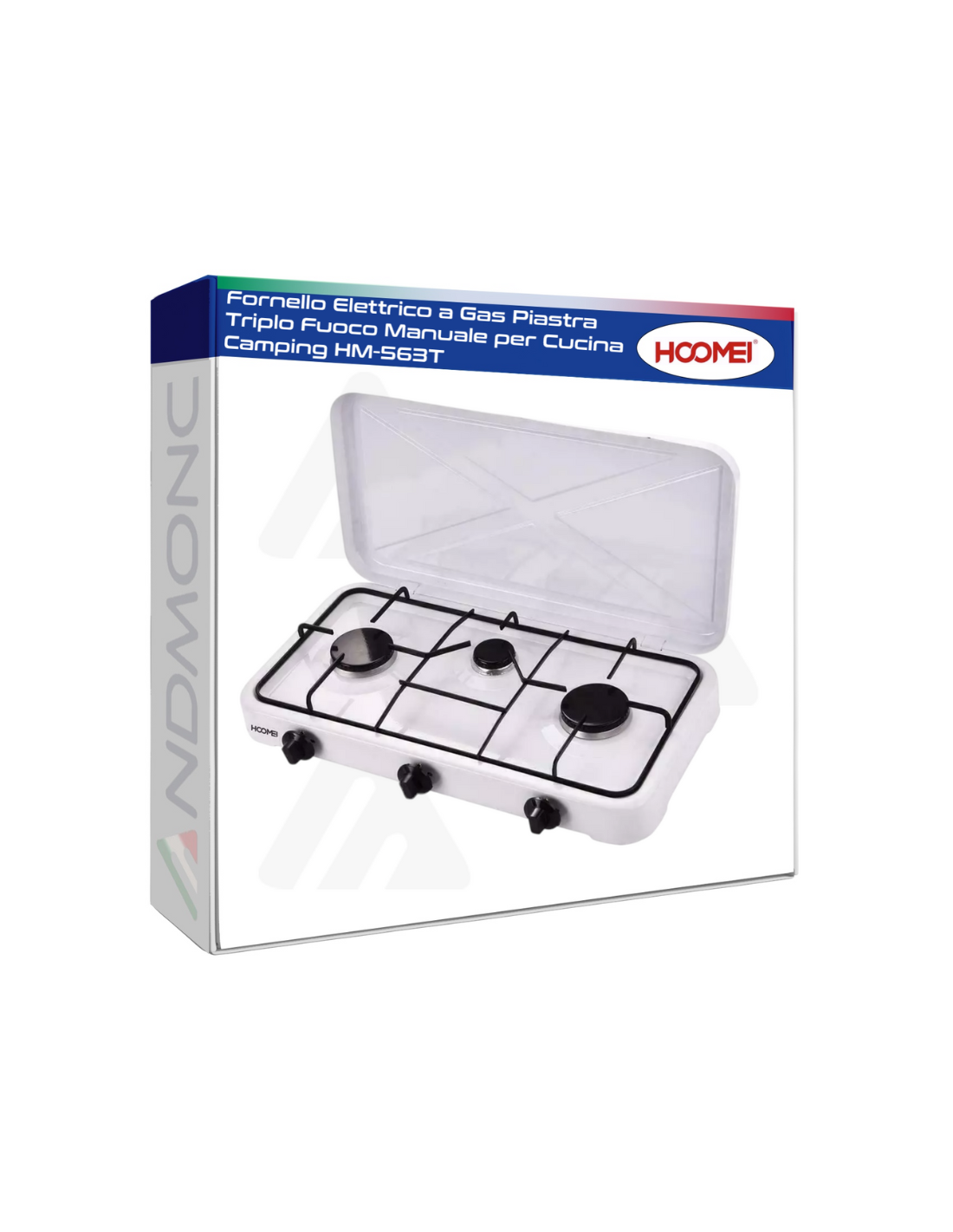 Il Hoomei HM-563T è un fornello a gas portatile con tre fuochi, ideale per campeggio, picnic, piccole cucine o come piano cottura aggiuntivo. Con un design compatto e funzionale, offre praticità e versatilità in ogni situazione.