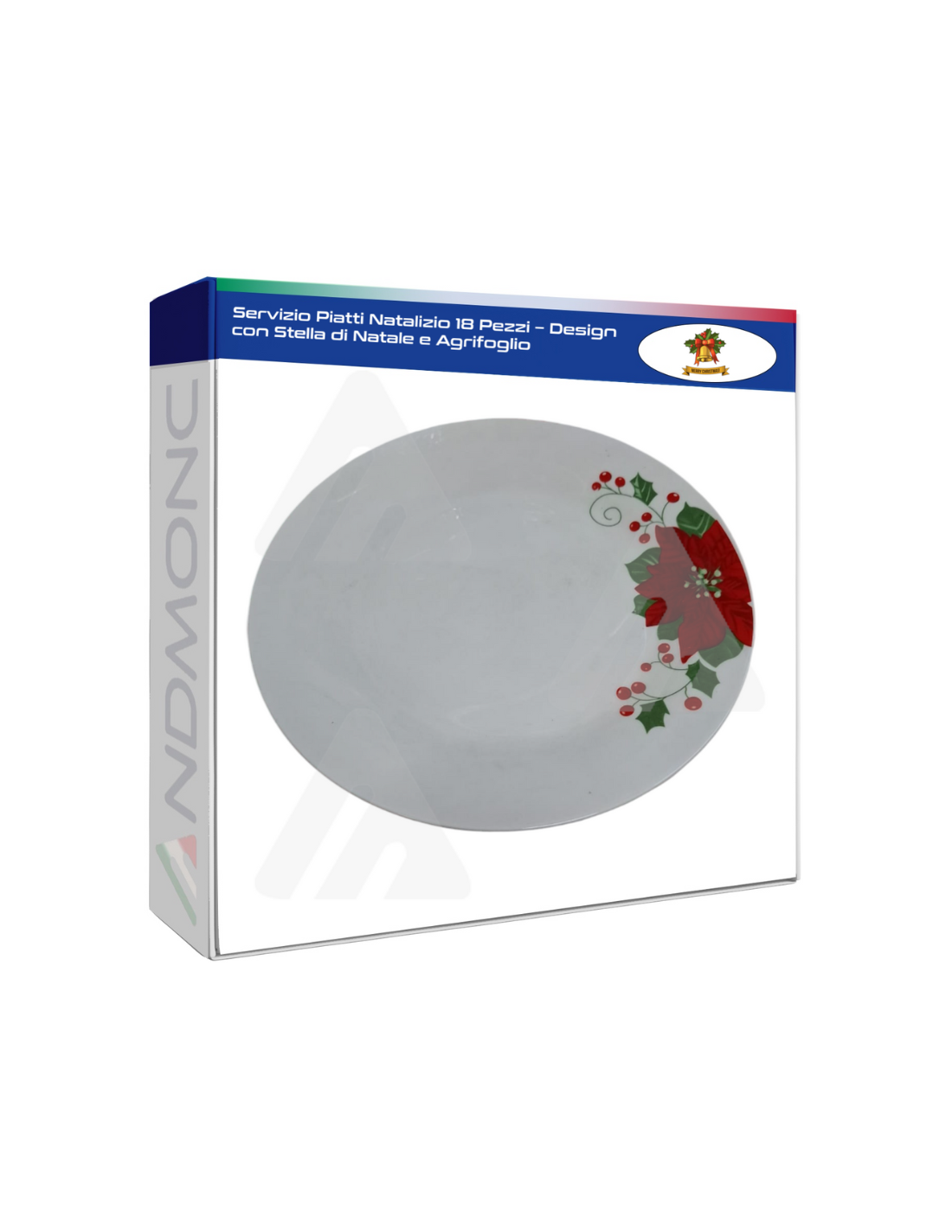 Servizio Piatti Natalizio 18 Pezzi – Design con Stella di Natale e Agrifoglio