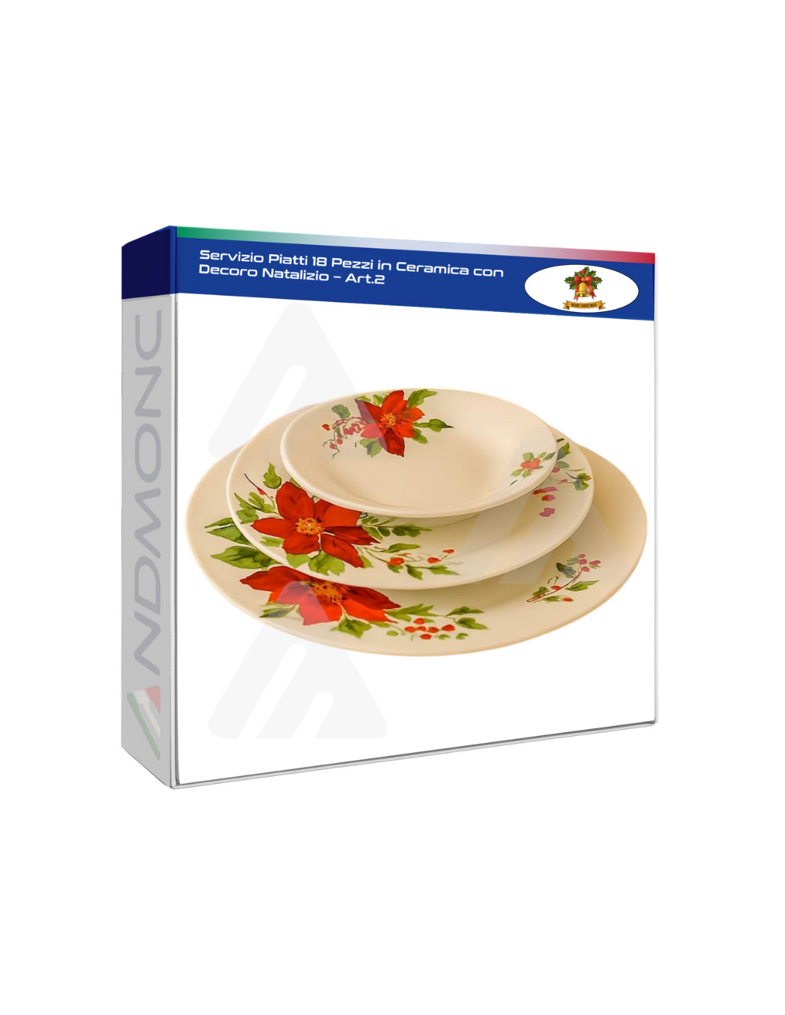 Servizio Piatti 18 Pezzi in Ceramica con Decoro Natalizio – Art.2