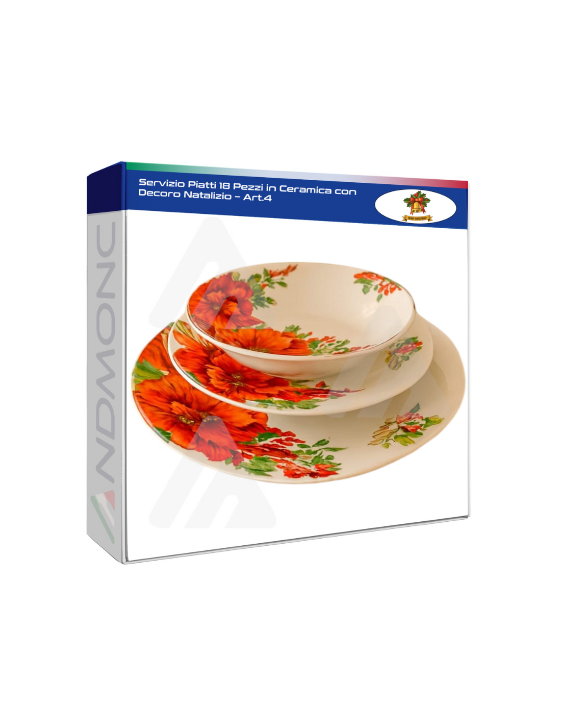 Servizio Piatti 18 Pezzi in Ceramica con Decoro Natalizio – Art.4