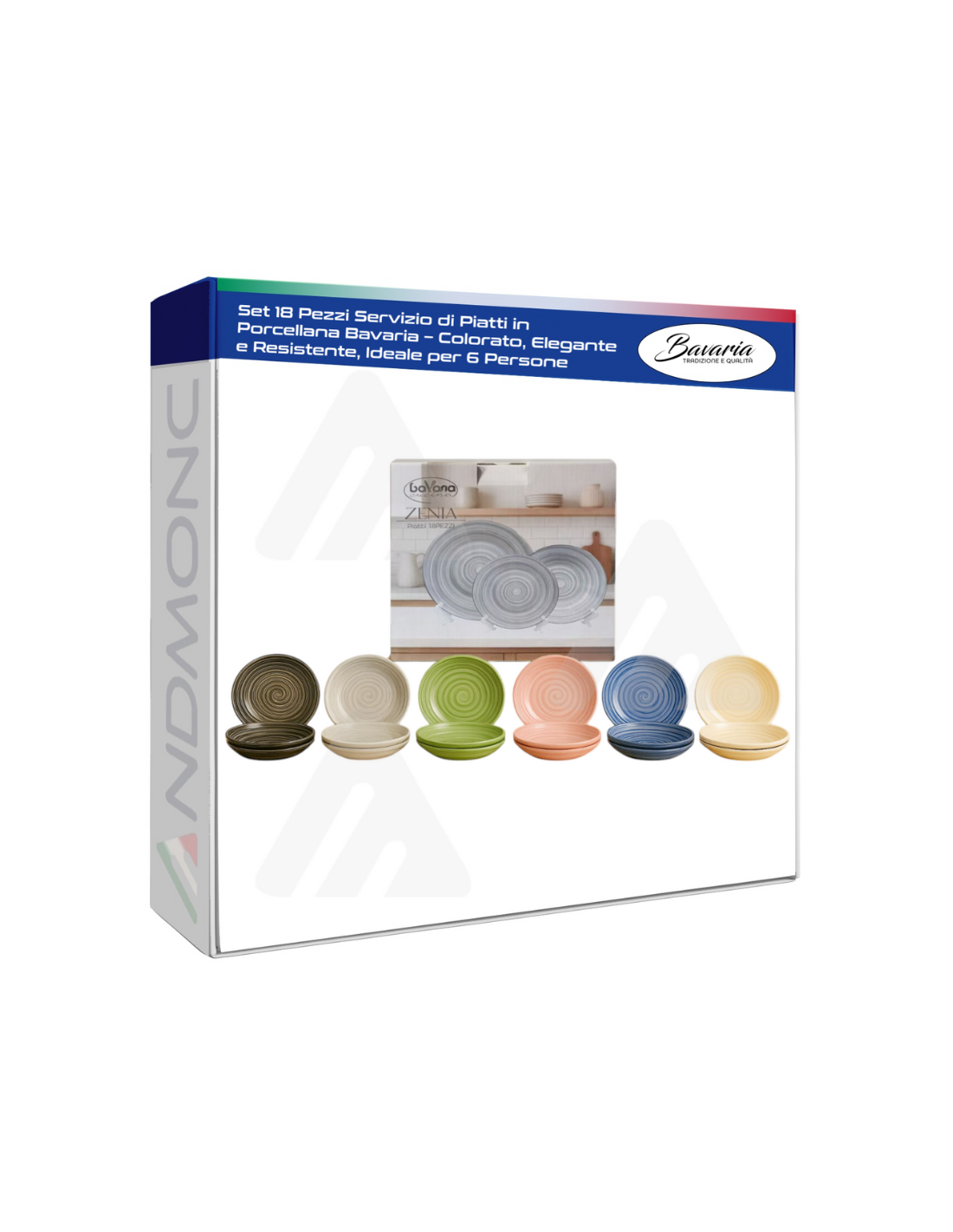 Set 18 Pezzi Servizio di Piatti in Porcellana Bavaria – Colorato, Elegante e Resistente, Ideale per 6 Persone