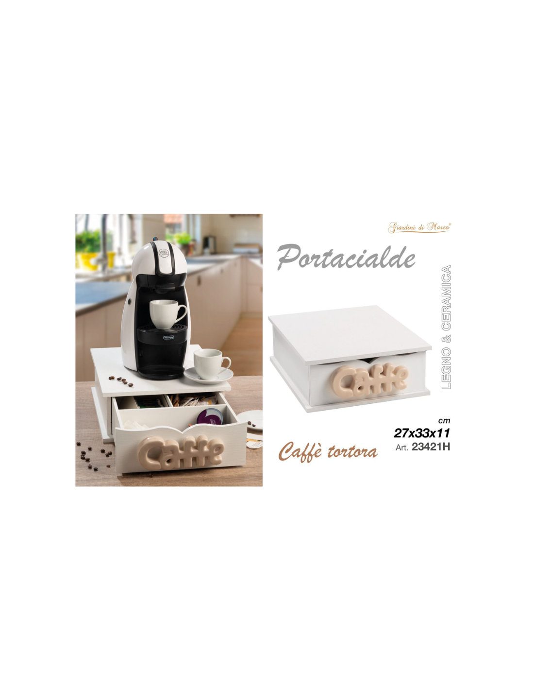 Elegante e funzionale, questo portacialde è realizzato in legno robusto con inserti in ceramica smaltata. Il suo design raffinato e il colore tortora neutro lo rendono perfetto per qualsiasi tipo di cucina o angolo caffè. Con dimensioni compatte ma capienti, permette di tenere in ordine le tue capsule preferite in modo pratico e decorativo.