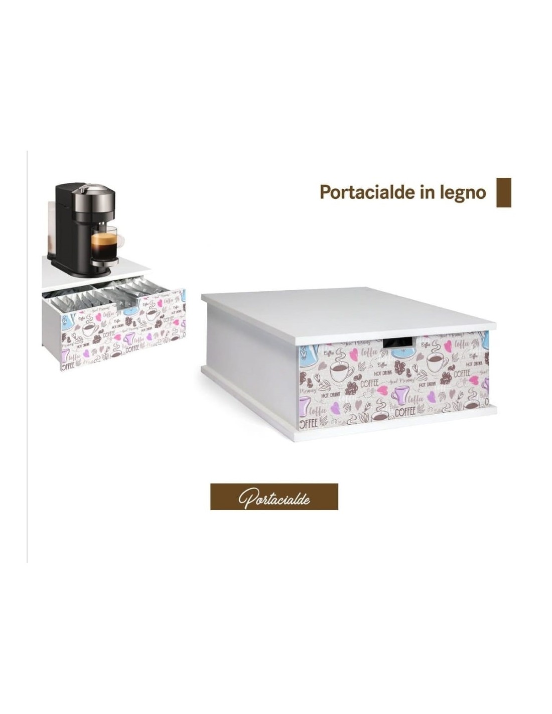 Dimentica i contenitori plastici anonimi o i cassetti disorganizzati. Il nostro portacialde in legno risolve il problema dell'accessibilità e dell'estetica, offrendo un sistema di organizzazione che è anche un elemento d'arredo. Ideale per gli amanti del caffè che apprezzano stile e praticità.