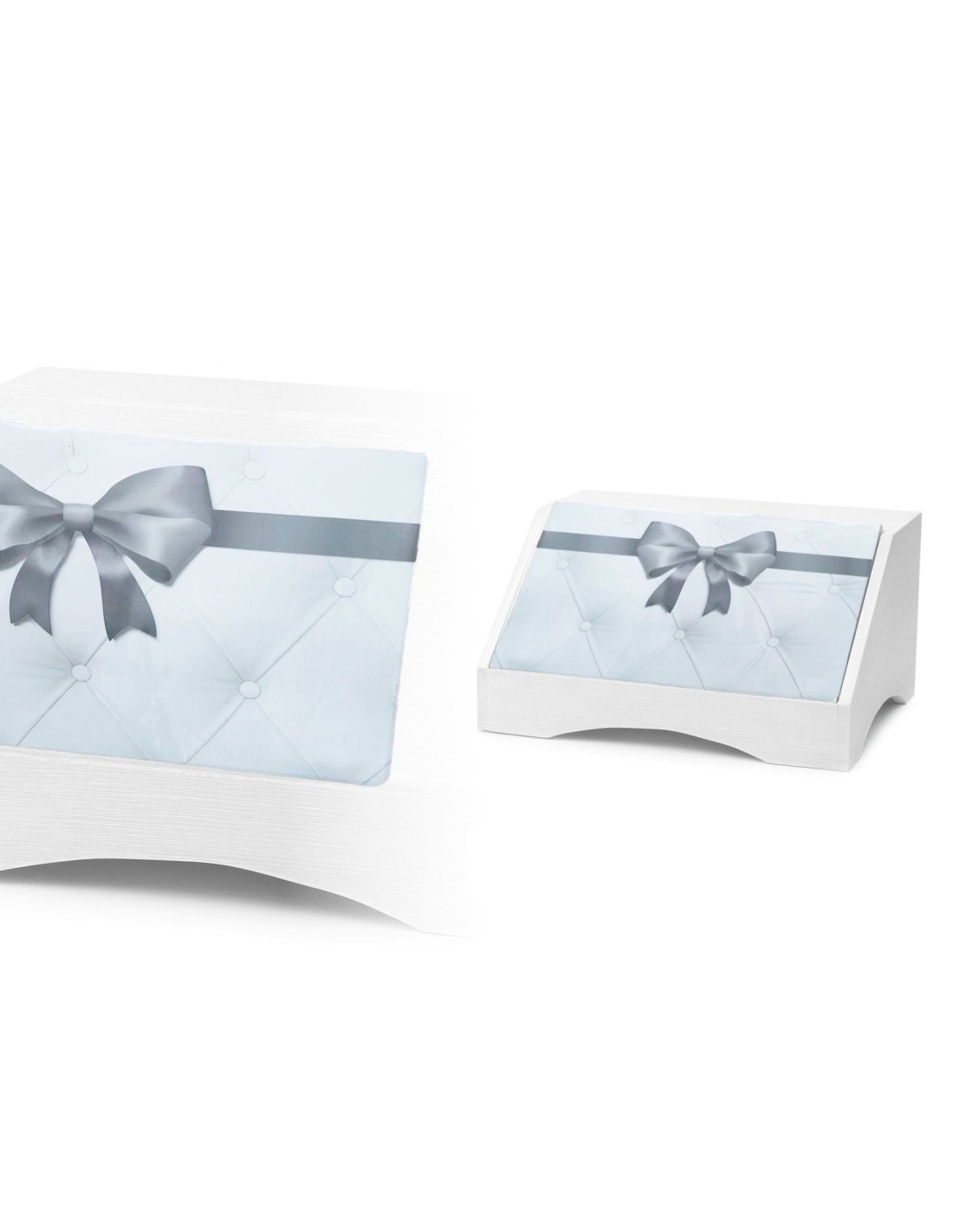 Scopri il Portapane con Fiocco Grigio in Legno Bianco: l'eleganza incontra la funzionalità! Questo raffinato contenitore di 38.5x28.5x20cm trasformerà il modo in cui conservi e presenti il tuo pane.