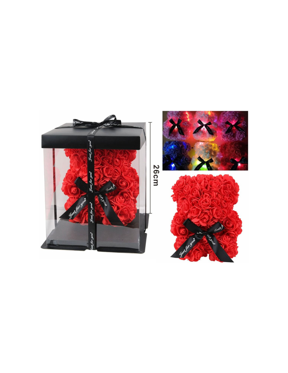 💖 Orso di Rose Rosse San Valentino con Luci LED – 25/26 cm