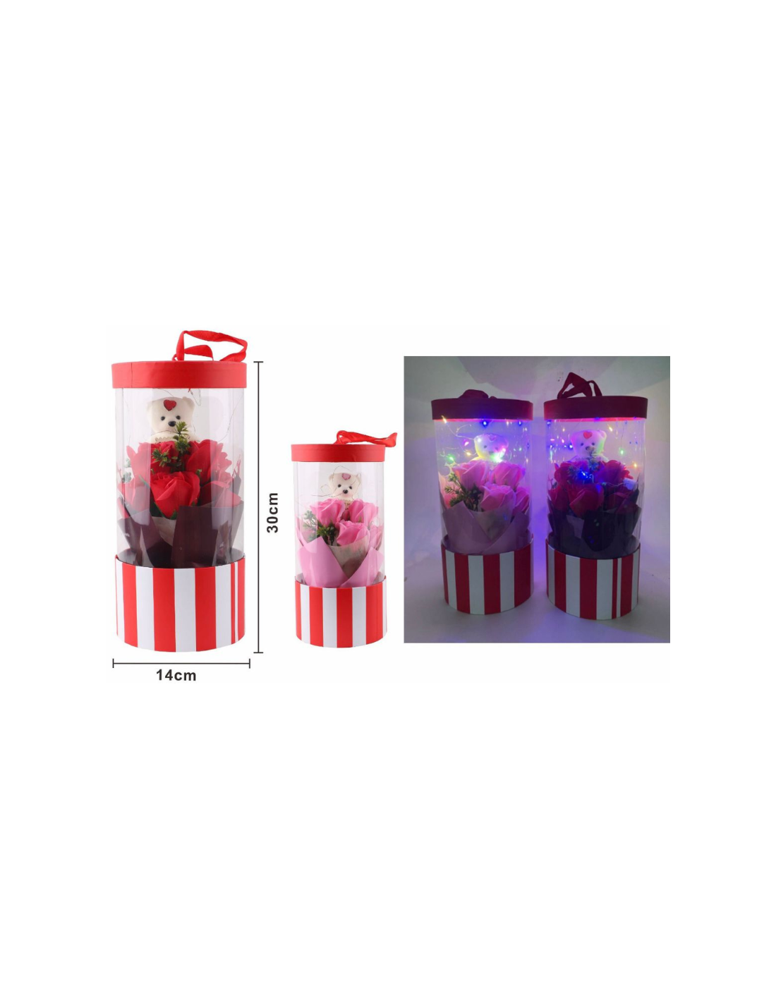 🌹 Cilindro Regalo con Orsetto, Rose e Luci LED – Rosa o Rosso