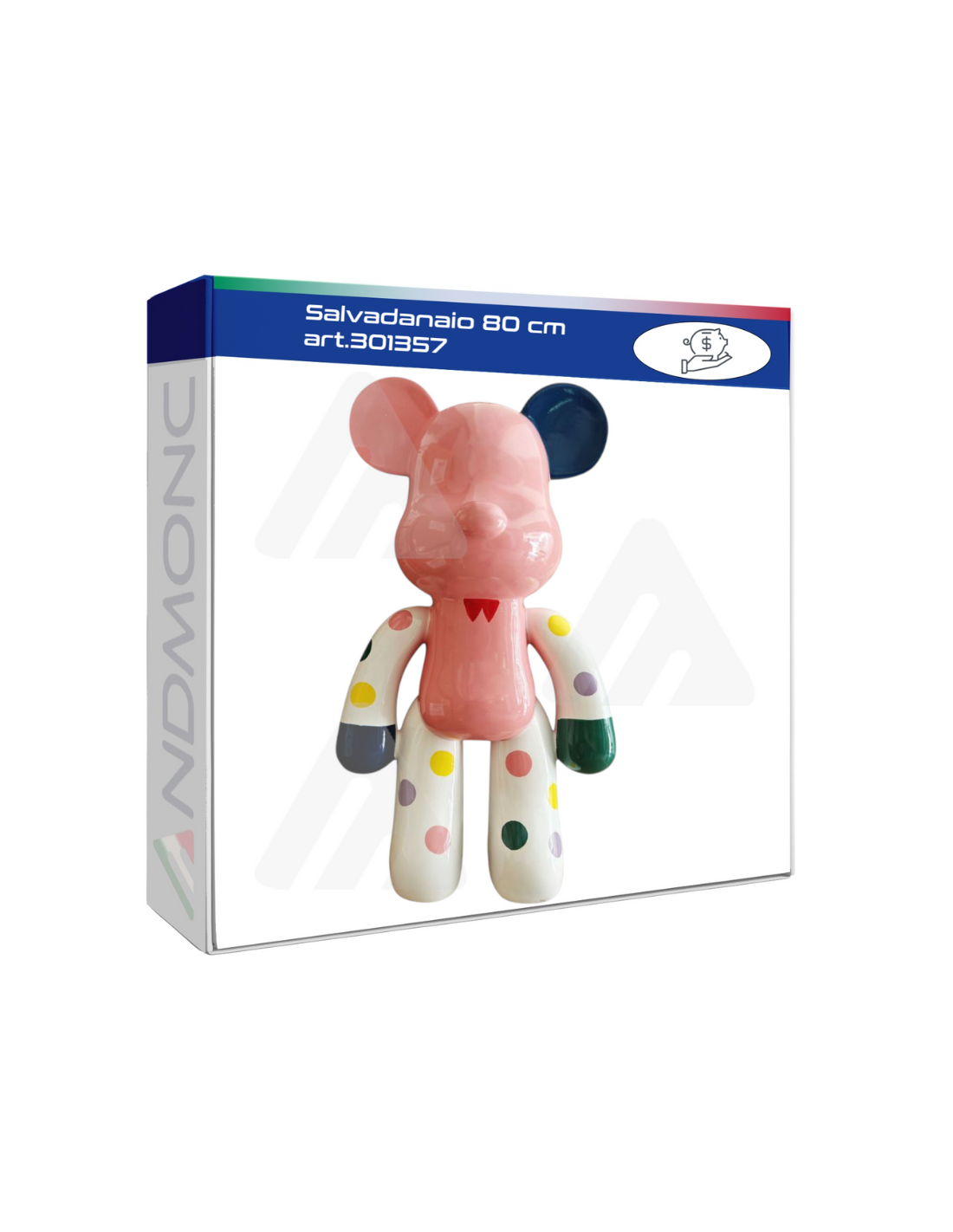 Un salvadanaio che fa la differenza! Con i suoi 80 cm di altezza, l’Art. 301357 è il modello ideale per chi vuole risparmiare in grande stile. Non è solo un pratico contenitore per monete e banconote, ma anche un elemento decorativo imponente che cattura l’attenzione in qualsiasi ambiente: casa, ufficio o attività commerciale.