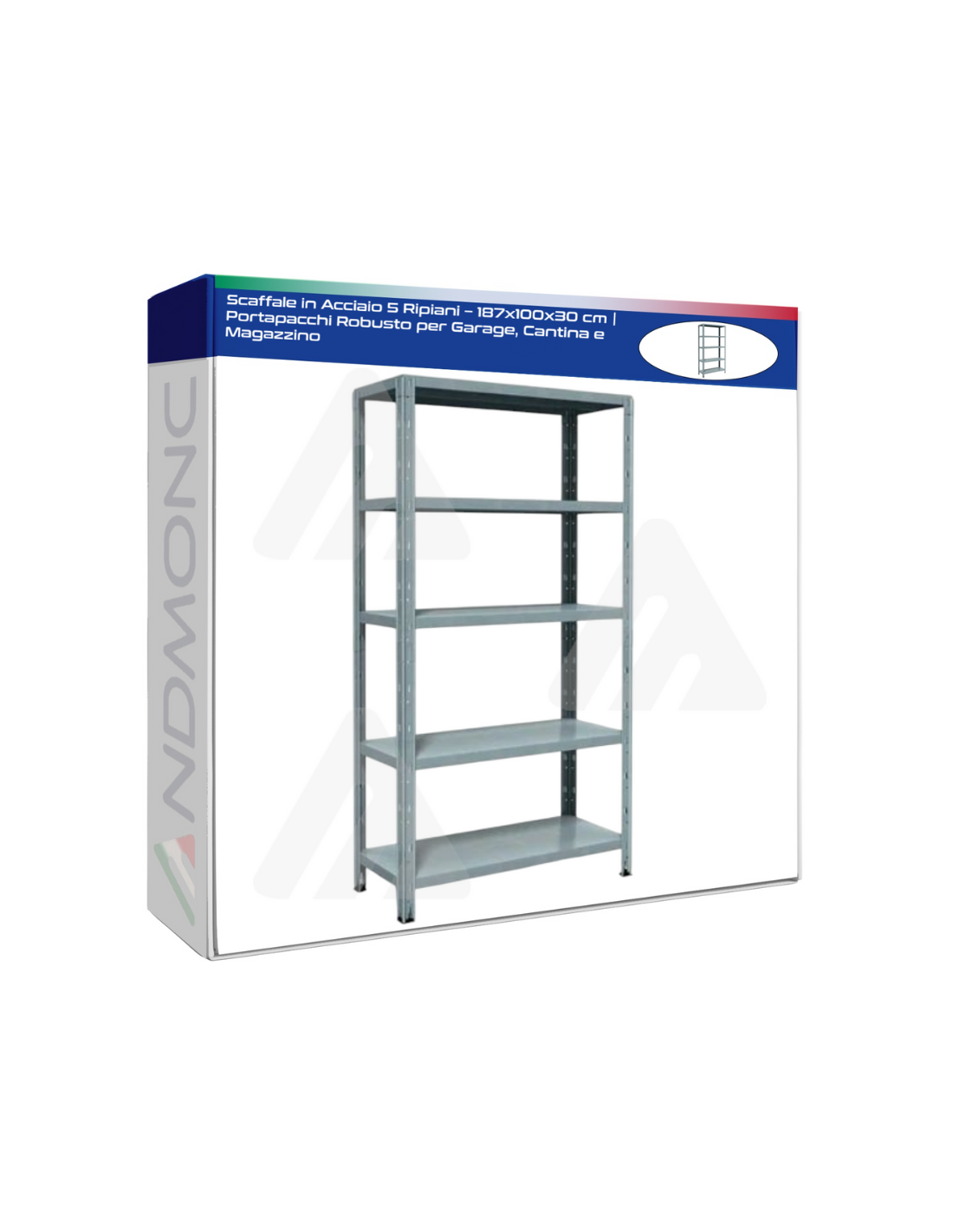 Scaffale in Acciaio 5 Ripiani – 187x100x30 cm Portapacchi Robusto per Garage, Cantina e Magazzino