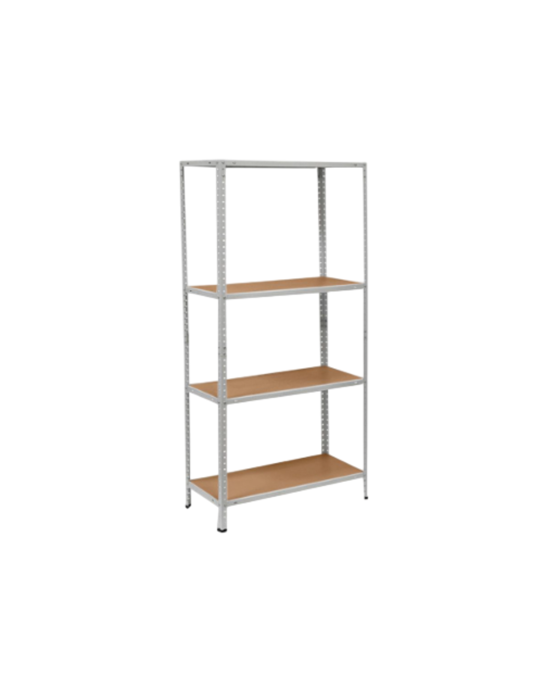 Scaffale in metallo con 4 ripiani in MDF, progettato per garantire stabilità, resistenza e una lunga durata nel tempo.