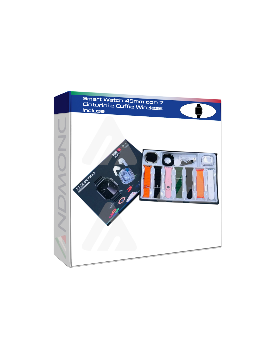 Rivoluziona il tuo quotidiano con lo Smart Watch 49mm, un concentrato di tecnologia avanzata e design personalizzabile. Con 7 cinturini intercambiabili e cuffie wireless incluse, è la soluzione perfetta per chi cerca funzionalità, eleganza e praticità in un unico prodotto.