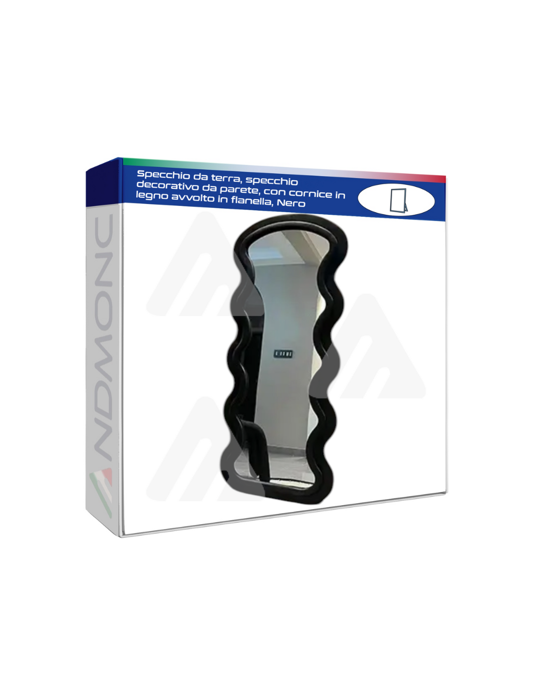 🖤 Specchio da Terra Decorativo 60x160 cm – Cornice in Legno Rivestita in Flanella Nera