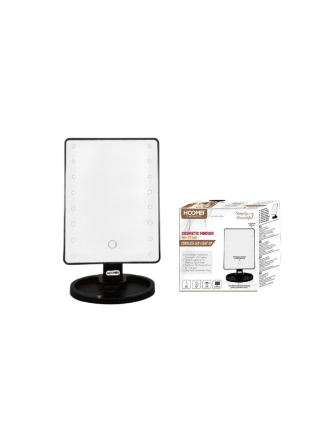 Lo Specchio Illuminato a LED Hoomei HM-7116B è l'accessorio ideale per trucco, cura della pelle e altre attività che richiedono una visione chiara e dettagliata. Dotato di 16 luci LED luminose, offre un'illuminazione potente e regolabile per adattarsi a diverse esigenze. Il pulsante smart touch permette di regolare facilmente la luminosità, mentre la rotazione di 180 gradi consente di trovare l'angolo perfetto per ogni utilizzo. La alimentazione a batterie rende lo specchio comodo e portatile.