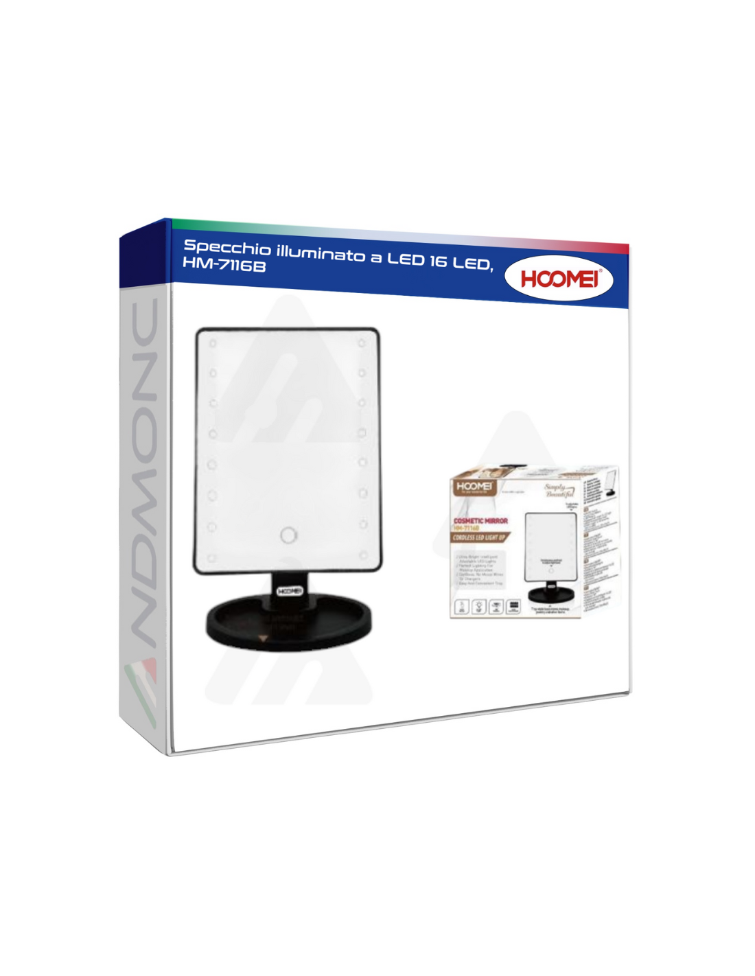 Hoomei HM-7116B – Specchio Illuminato a LED con 16 Luci LED, Smart Touch e Rotazione 180°