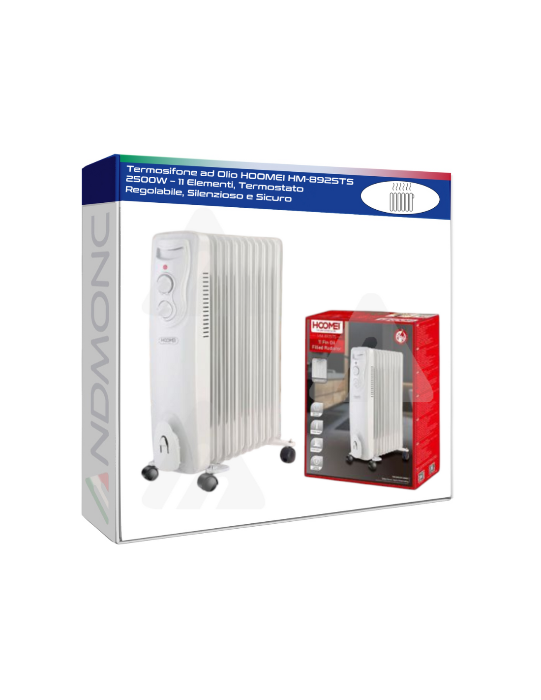 Termosifone ad Olio HOOMEI HM-8925TS 2500W – 11 Elementi, Termostato Regolabile, Silenzioso e Sicuro