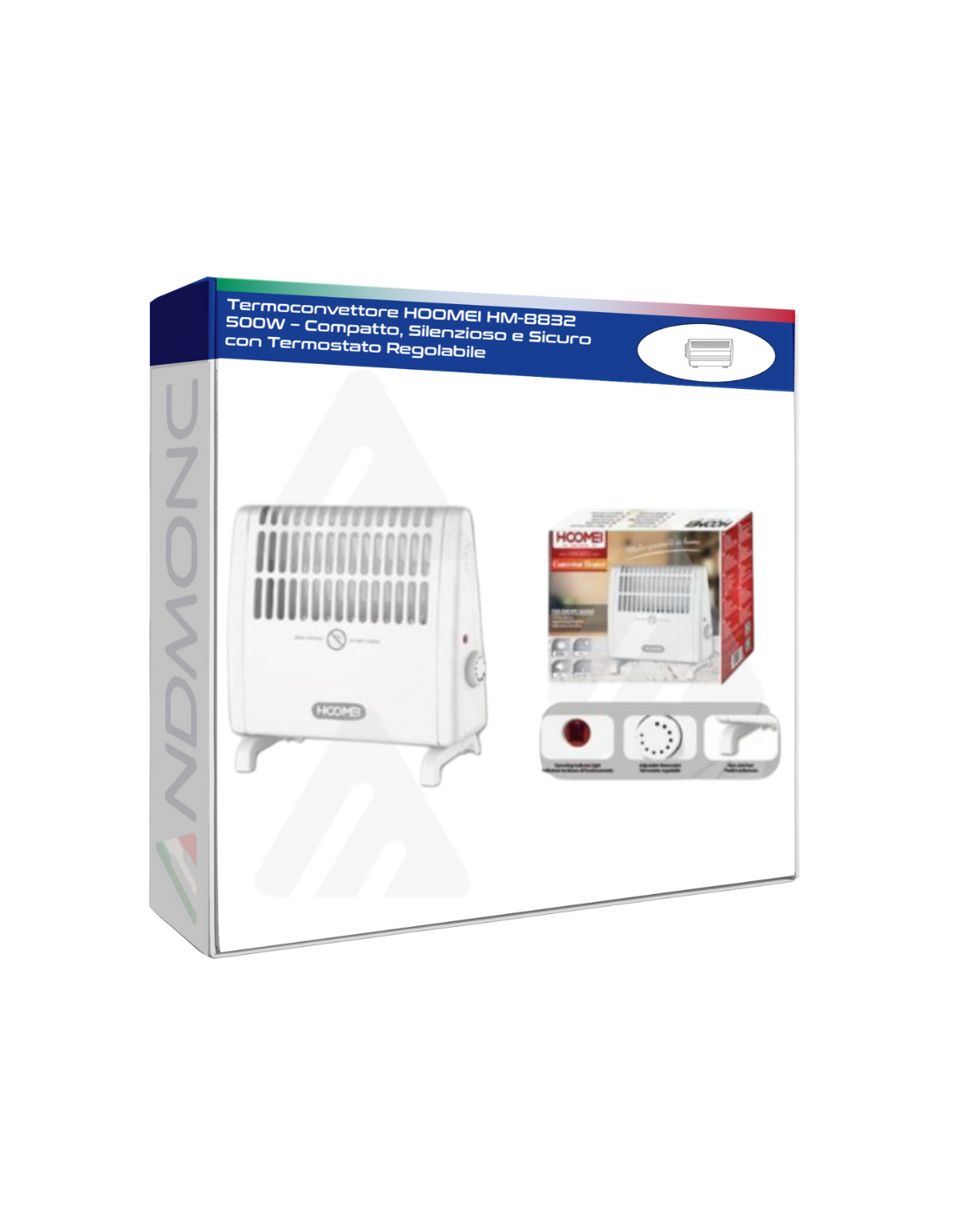 Termoconvettore HOOMEI HM-8832 500W – Compatto, Silenzioso e Sicuro con Termostato Regolabile