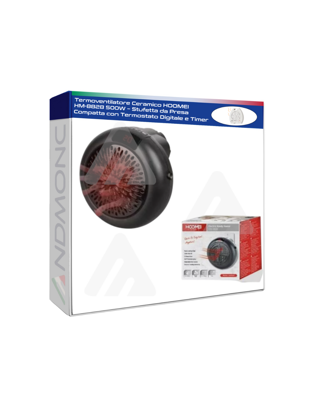Termoventilatore Ceramico HOOMEI HM-8828 500W – Stufetta da Presa Compatta con Termostato Digitale e Timer