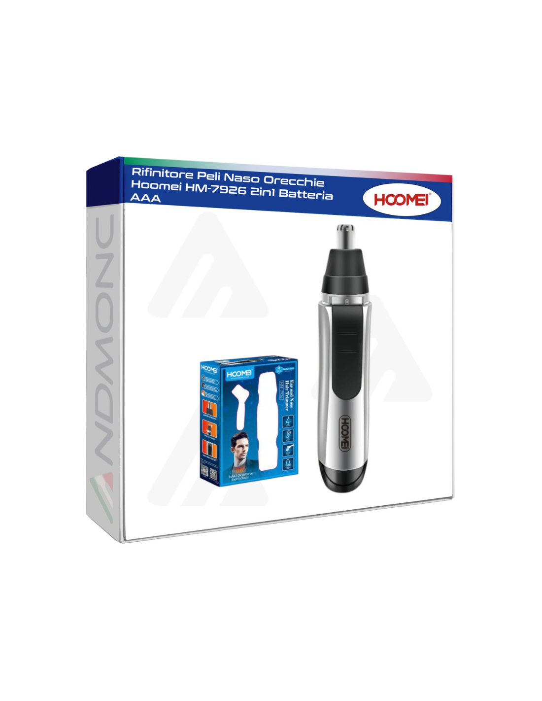 Il Hoomei HM-7926 è un rifinitore 2 in 1 progettato per rimuovere in modo sicuro e preciso i peli indesiderati da naso e orecchie. Grazie al suo design compatto e all'alimentazione a batteria AAA (non inclusa), è ideale per l'uso quotidiano e per i viaggi.