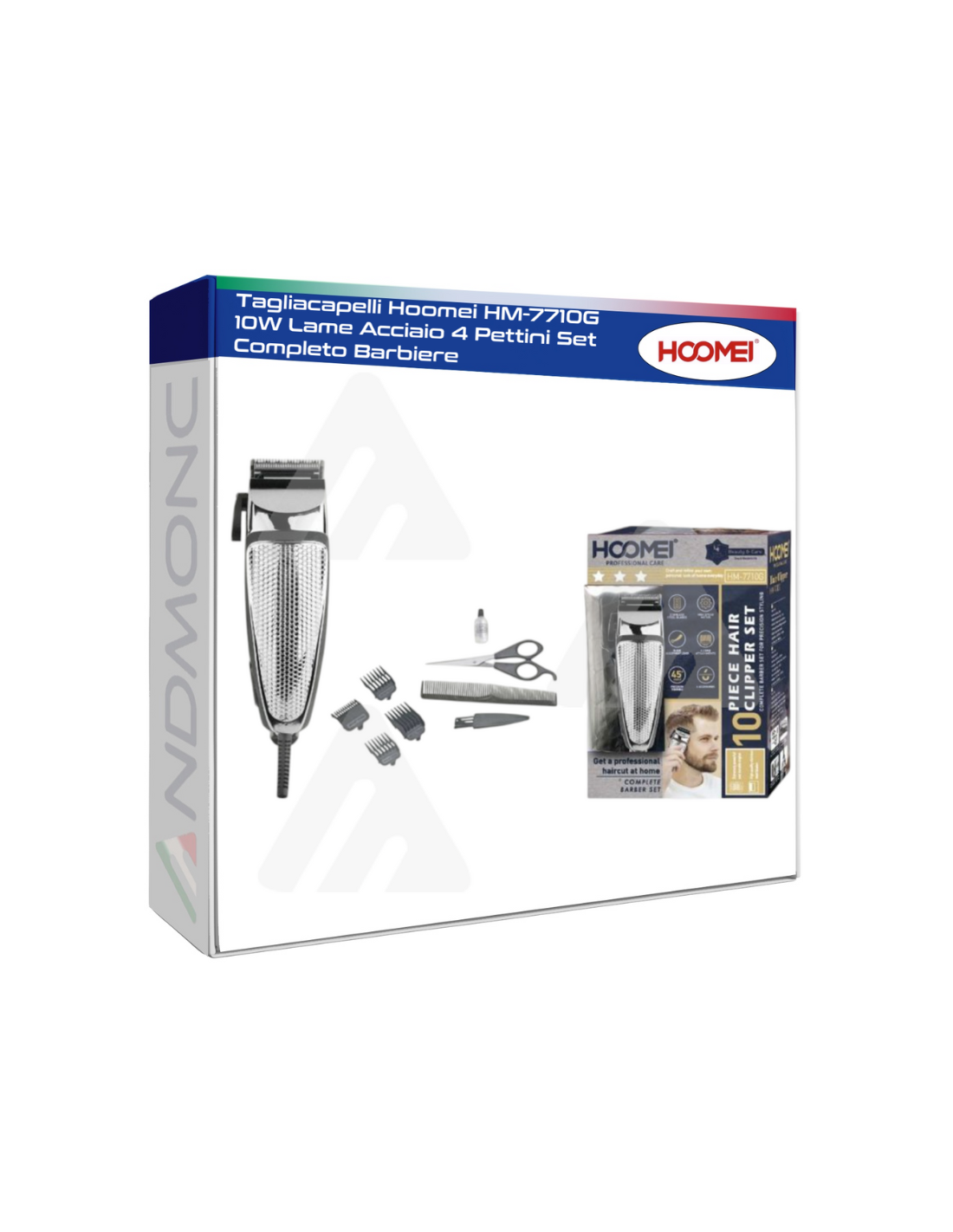 Tagliacapelli Hoomei HM-7710G 10W Lame Acciaio 4 Pettini Set Completo Barbiere