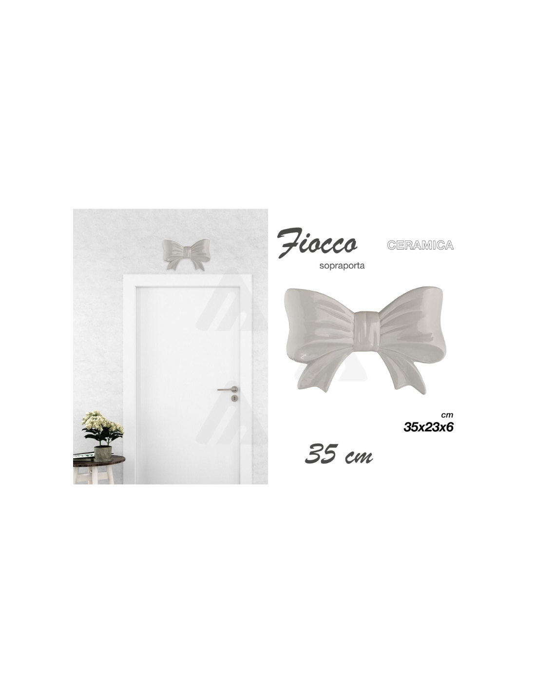 Aggiungi un tocco di eleganza senza tempo alla tua casa con il nostro Sopraporta Fiocco in Ceramica Grigio. Con dimensioni di 35cmx23cmx6cm, questo raffinato elemento decorativo è perfetto per valorizzare ogni ingresso, infondendo un'atmosfera di classe e bellezza.