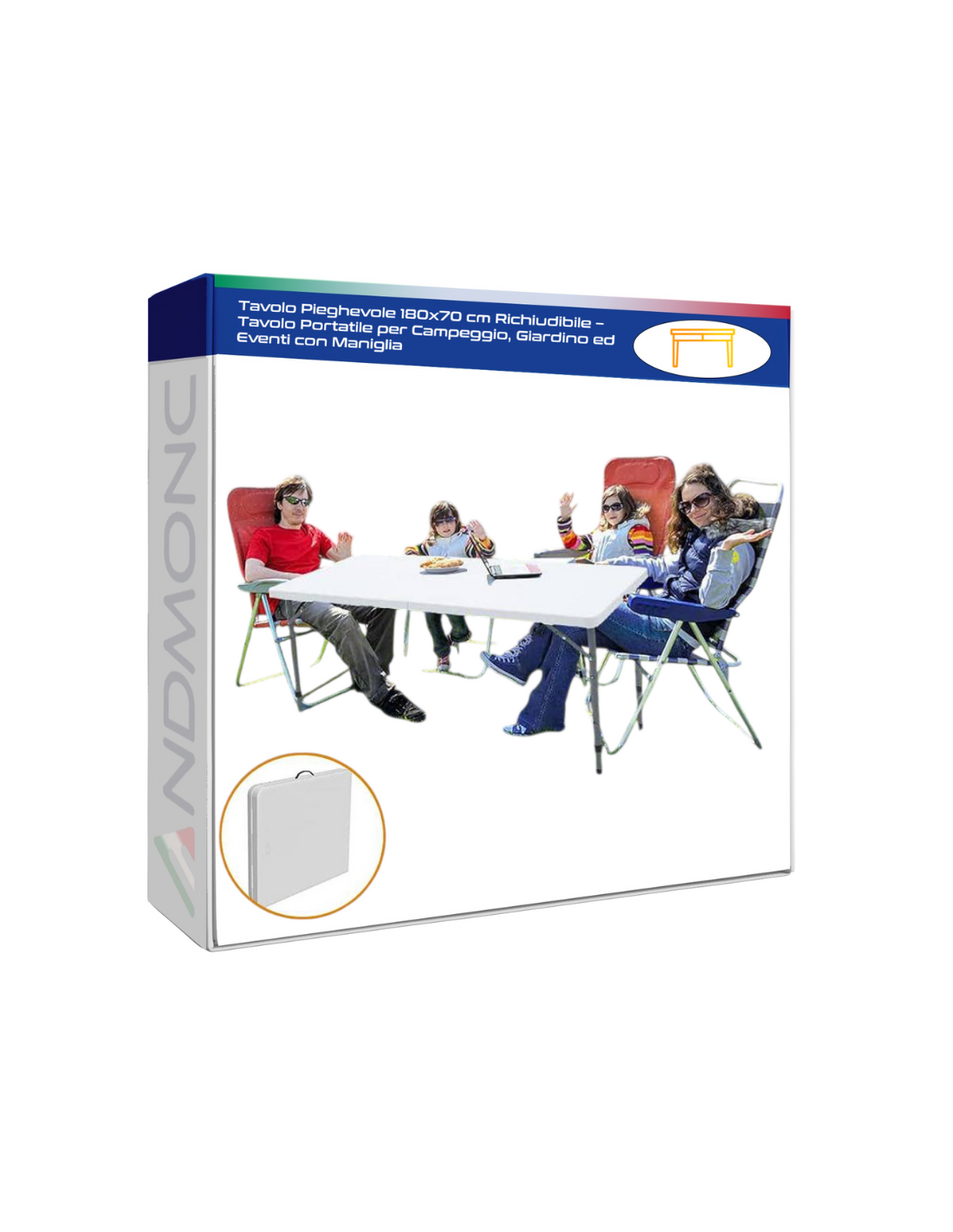 Tavolo Pieghevole 180x70 cm Richiudibile – Tavolo Portatile per Campeggio, Giardino ed Eventi con Maniglia
