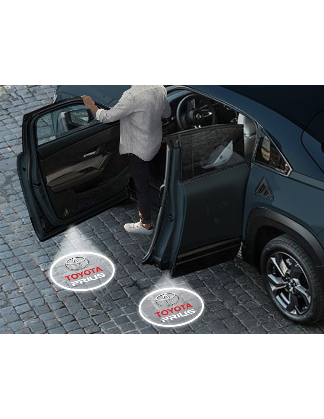 • Kit luci led sottoporta modello Carbonio, sensore automatico intelligente con Proiezione logo Toyota Prius, kit da 2 o da 4 Porte