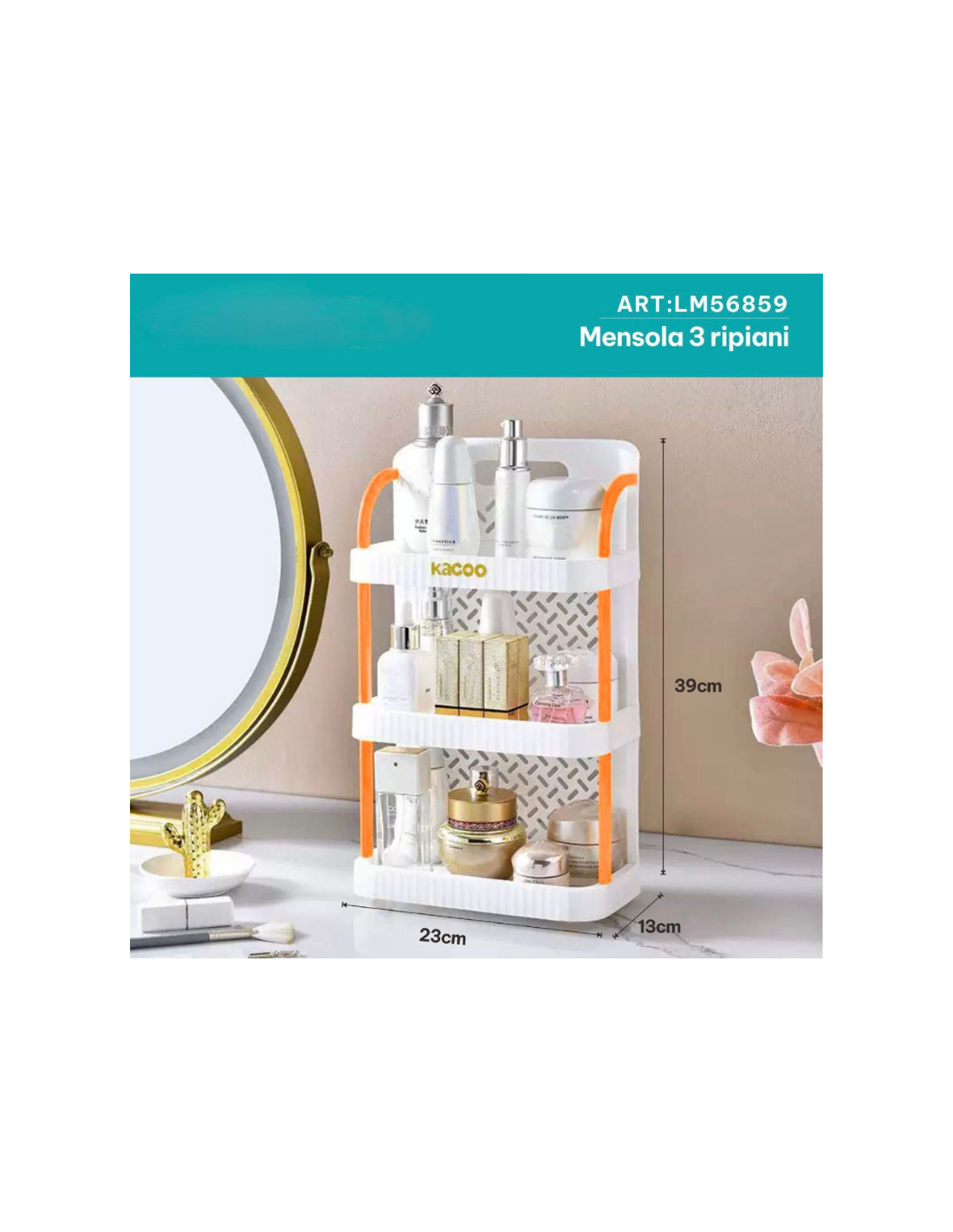 Organizza al meglio i tuoi spazi con questa mensola organizer a 3 ripiani, ideale per bagno, cucina, camera o ufficio. Grazie al design compatto e verticale, consente di sfruttare lo spazio in altezza mantenendo tutto in ordine e facilmente accessibile.