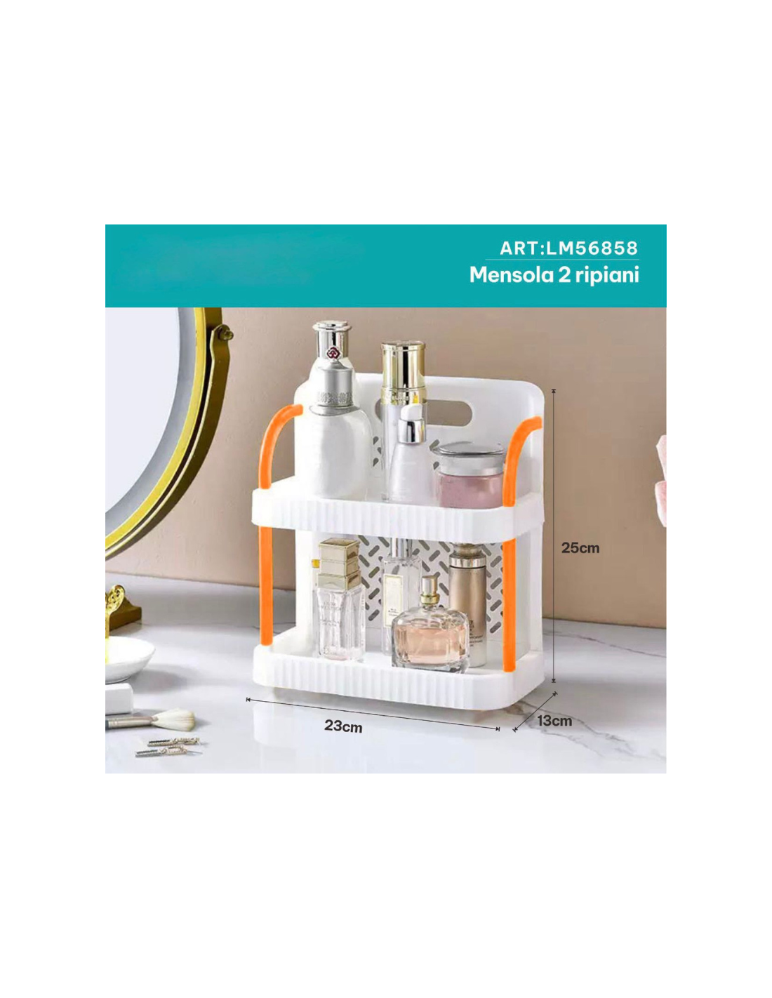Rendi i tuoi spazi più ordinati con questa mensola organizer a 2 ripiani, perfetta per bagno, cucina, camera da letto o ufficio. Il design compatto e funzionale consente di organizzare prodotti e accessori in modo pratico, sfruttando al meglio lo spazio disponibile.