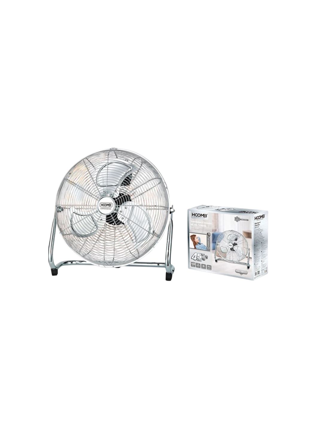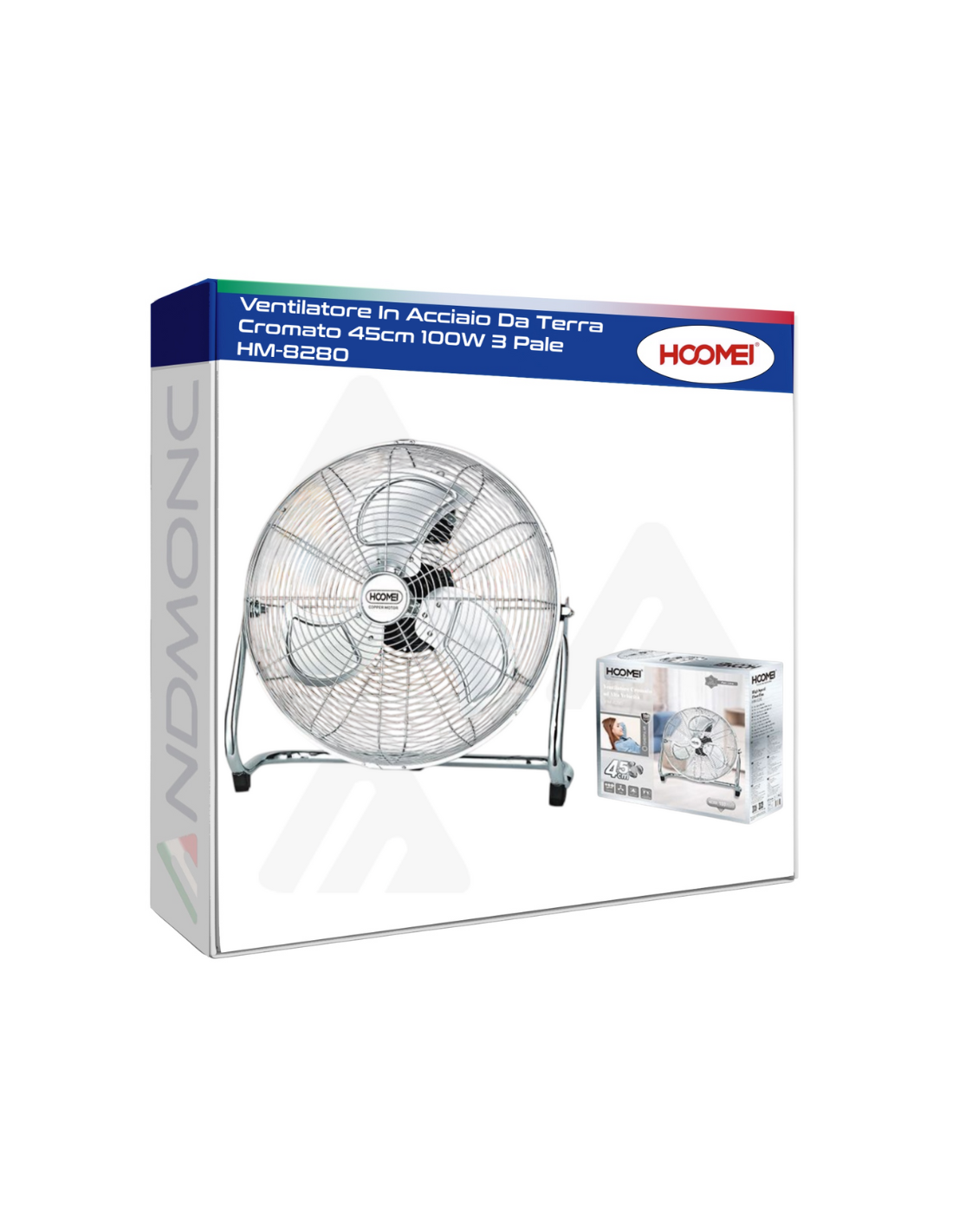 Ventilatore da Terra in Acciaio Cromato HOOMEI HM-8280 – 100W, 45 cm, 3 Pale