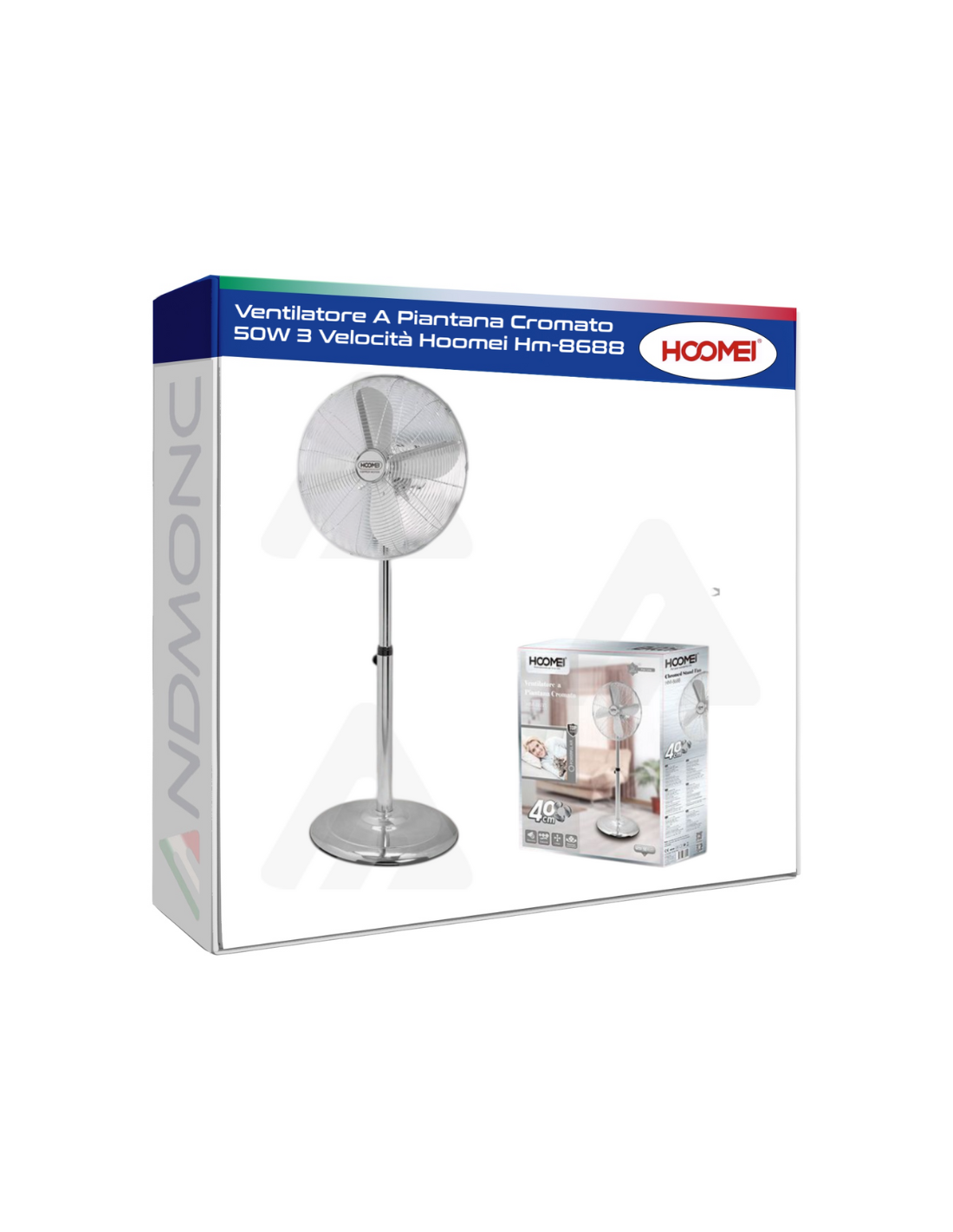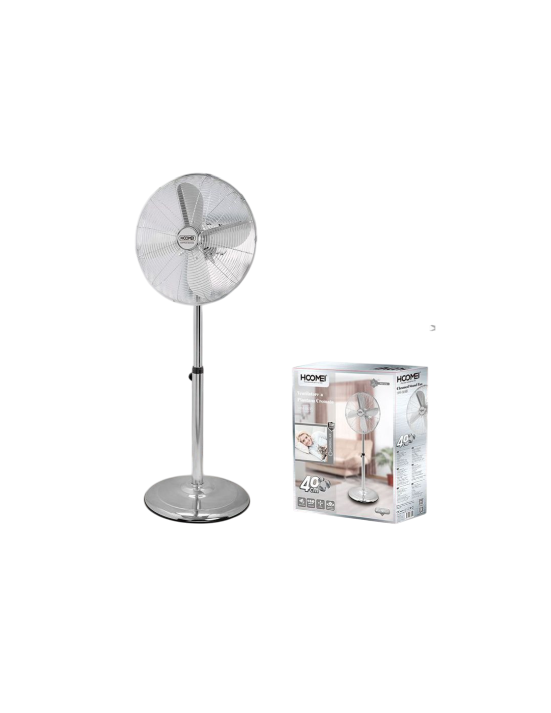 Ventilatore a Piantana Cromato HOOMEI HM-8688 – 50W, 3 Velocità, Design Elegante in Acciaio