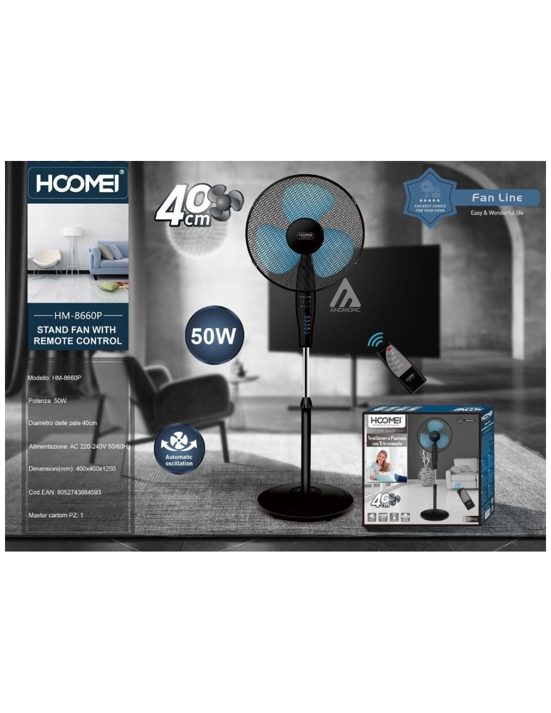 Ventilatore con telecomando 50W hm-8660P