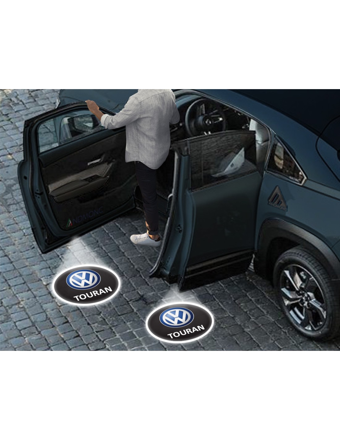 • Kit luci led sottoporta modello Carbonio, sensore automatico intelligente con Proiezione logo Volkswagen Touran, kit da 2 o da 4 Porte
