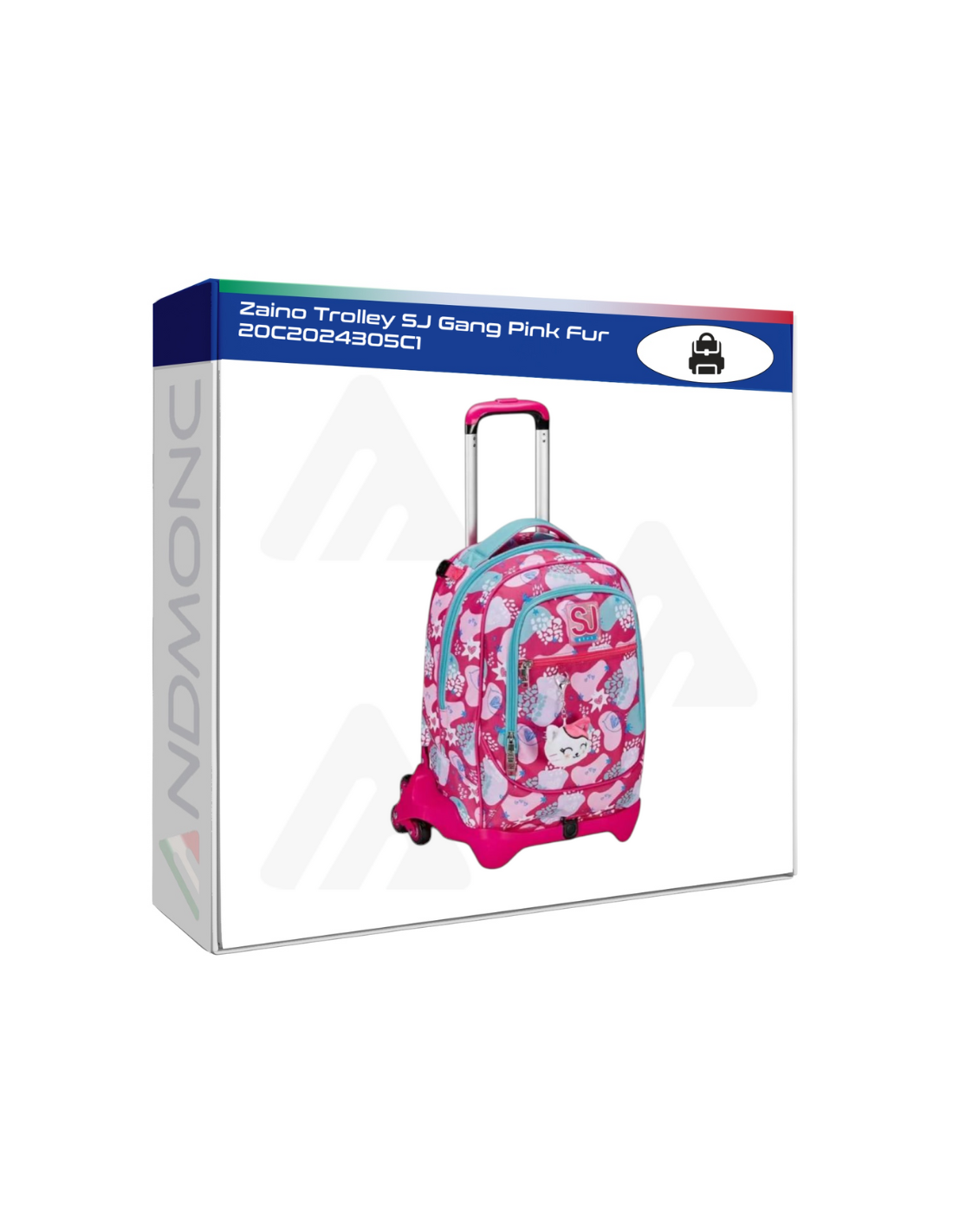 Zaino scuola SJ Gang Pink Fur con trolley integrato, pratico e resistente. Perfetto per studenti che desiderano unire funzionalità e stile originale, con un tocco di colore e divertimento grazie alle grafiche Pink Fur.