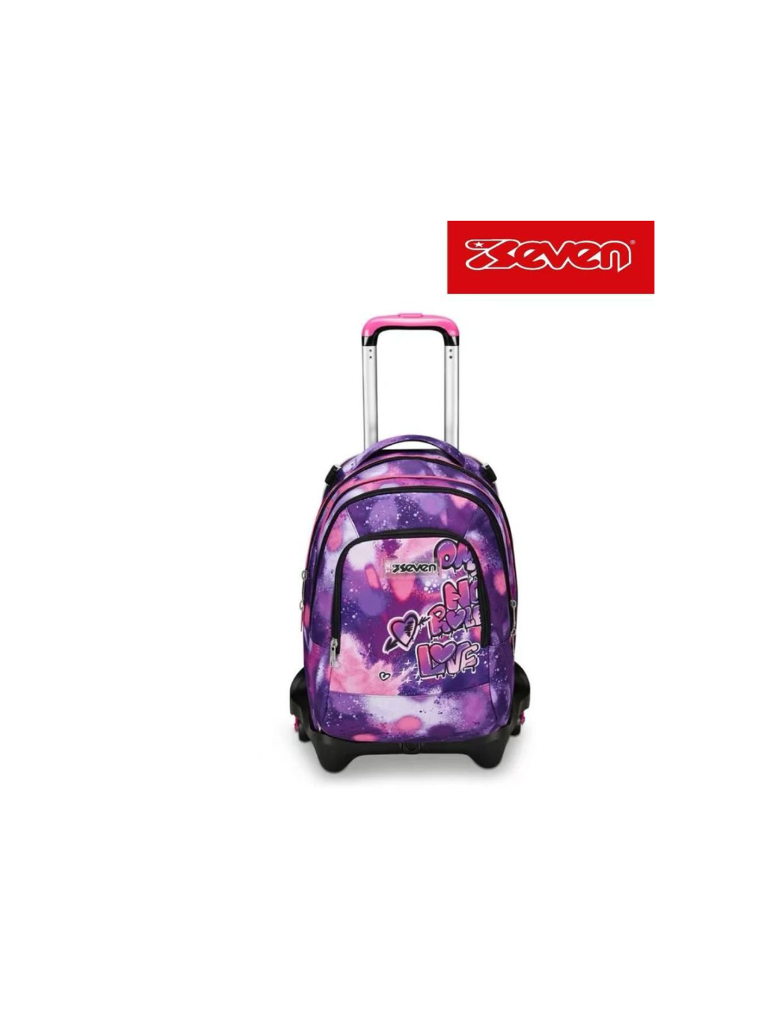 Uno zaino trolley moderno e funzionale della linea Seven, pensato per la scuola e il tempo libero. Comodo da trascinare grazie alle ruote e alla maniglia estensibile, ma anche pratico da indossare come zaino.