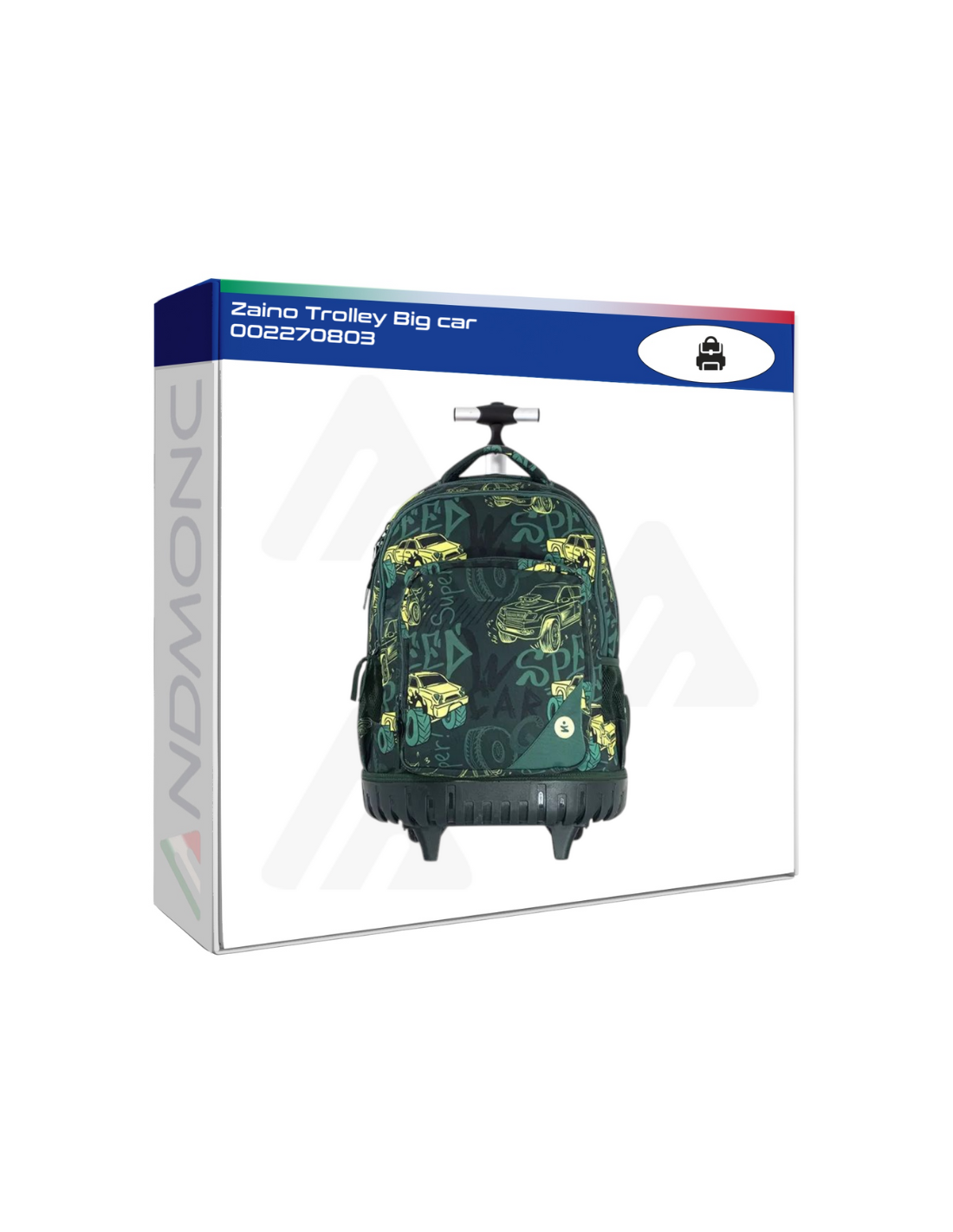 Zaino trolley Big Car, ideale per bambini appassionati di auto. Pratico, resistente e colorato, perfetto per la scuola e il tempo libero.